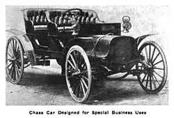 Alle bis zum Modelljahr 1914 hergestellten Chase-Motorfahrzeuge waren Highwheeler; d. h. kutschenähnliche Motorfahrzeuge mit riesigen Rädern. Untypisch für diese Kategorie war am Chase, dass er den Motor vorn unter einer Haube statt im oder unter dem Wagenkasten hatte.