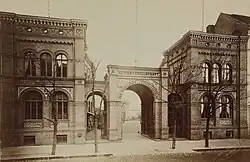 Die Durchgangsbögen des Hinterhauses zum nicht mehr existierenden Festsaalgebäude sind erkennbar.