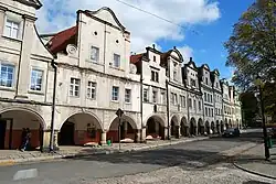 - Die ehemalige Pfarrschule liegt in der ul. Kościelna 5. Das frühere Pfarrhaus wurde 1575 renoviert und 1730 umgebaut. Es hat ein Sgraffito-Dekor an den Fassaden. Damit verbunden ist ein Torbau von 1730 mit einem reich verzierten Portal.
