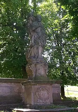 - Barockbrunnen mit Statue des böhmischen Landesheiligen Johannes von Nepomuk.