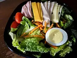 Chefsalat (auch Chef-Salat[1]) ist ein gemischter Rohkostsalat der amerikanischen Küche, der mit Käse, Fleisch und hartgekochten Eiern zusammengesetzt wird.[2] Bis auf die Blattsalate werden alle Zutaten in Julienne-Form gestiftelt oder gehackt, sodass keine der Zutaten den Geschmack dominiert.[3]
