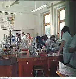 Ausbildung von Chemielaboranten im VEB Keramische Werke Hermsdorf (KWH), Thüringen/DDR, 1977.