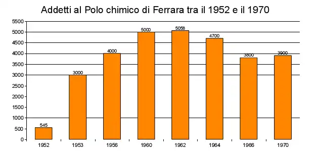 Unter der Leitung von Cesare Merzagora begann die Schließung des Stickstoffwerks, da es zu klein geworden war und nicht mehr in die Marktpläne von Montedison passte: Dieser Teil des Werks wurde in das Zentrum für die Umstellung der Produktion integriert. Was die Beschäftigung betrifft, so waren 1952 in Montecatini in Ferrara 545 Personen beschäftigt. In den folgenden Jahren stieg die Zahl der Beschäftigten kontinuierlich an, bis sie 1962 bei 5.058 Personen lag. Diese verteilten sich auf die drei großen Komplexe des Petrochemie-, Stickstoff- und Forschungszentrums.