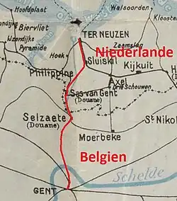 Am 26. April 1864 erhielt Isidore Dechamp aus Gent vom König der Belgier Leopold I. eine Konzession zum Bau einer Eisenbahnlinie in der Normalspurweite von Gent über Zelzate an die Grenze zu den Niederlanden in Richtung Terneuzen. Der niederländische Teil der Strecke weiter über Sas van Gent und Sluiskil wurde bereits am 19. April 1864 durch Erlass des niederländischen Innenministers genehmigt.[1]