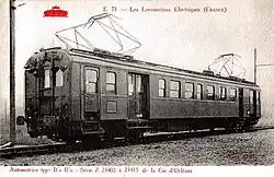 1924 wurde im Abschnitt Juvisy-sur-Orge–Étampes der Bahnstrecke Paris–Bordeaux mit der Elektrifizierung begonnen. Für die von der PO projektierten 2300 km – zunächst ging es aber nur um die am stärksten belastete Strecke ihres Netzes von Paris nach Vierzon[4] – wurde eine Stromversorgung mit 1500 V mittels einer Oberleitung gewählt. Da der Endabschnitt zwischen Juvisy und Gare d’Orsay bereits mit Stromschienen und derselben Spannung betrieben wurde, konnten mit Dachstromabnehmern und seitlichen Schleifkontakten ausgestattete elektrische Vorortzüge ab 1927 durchgängig vom Gare d’Orsay bis Étampes verkehren. 1926 wurde das elektrisch betriebene Netz über Les Aubrais bei Orléans nach Süden bis Vierzon erweitert, 1933 von Les Aubrais in südwestlicher Richtung bis Saint-Pierre-des-Corps bei Tours.[7]