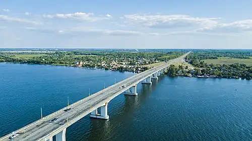 In der Nähe der Stadt bauten deutsche Eisenbahnpioniere 1943 die „größte Eisenbahnkriegsbrücke des Zweiten Weltkrieges“. Sie war zwei Kilometer lang, im Wasser 14 Meter tief und über dem Wasser 10 Meter hoch. Für die Standfestigkeit wurden 400 Stahlrohre bis zu 17 Meter in den schlammigen Grund gerammt. Der Bau dauerte sieben Monate und wurde von dem verstärkten I. Bataillon des Eisenbahnpionier-Regiments 2 (I./Eisb.Pi.Rgt.2) ausgeführt.[31]