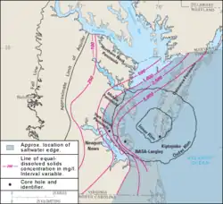 Der Einschlag führte in der Umgebung der Chesapeake-Bucht zu einer intensiven Zerrüttung und Störung der anstehenden Gesteine. Über die bis heute existierenden Störungsbahnen dringt Meerwasser in das Grundwasser ein und stellt heute eines der stärksten Probleme für die Trink- und Brauchwasserversorgung der Region dar.