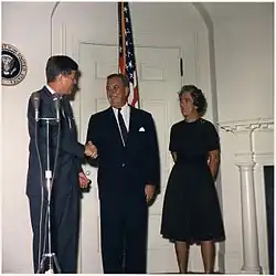 Chester Bowles (Mitte) neben John F. Kennedy (links)