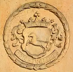 Chevallerie ist der Name einer ursprünglich französischen Familie, die seit 1547 dem französischen Adel angehörte. Das Wappen stellt ein aufspringendes silbernes Pferd vor rotem Hintergrund unter Blätterkrone dar.[1]