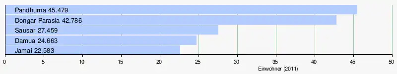 Weitere Städte mit mehr als 10.000 Bewohnern sind Chandameta-Butaria (16.497 Einwohner), Lonia Karbal (14.989 Einwohner), Amarwara (14.141 Einwohner), Chaurai Khas (12.956 Einwohner) und Harrai (11.000 Einwohner).