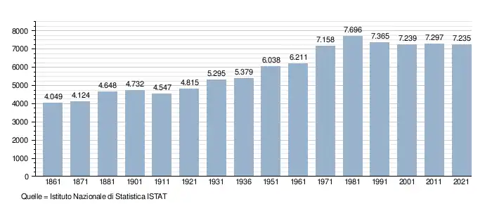 - ↑ Bilancio demografico e popolazione residente per sesso al 31 dicembre 2024. ISTAT. (Bevölkerungsstatistiken des Istituto Nazionale di Statistica, Stand 31. Dezember 2024).