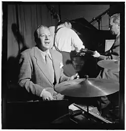 George Wettling im Studio des Senders ABC, New York City, ca. Mai 1947. Foto von William P. Gottlieb