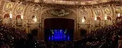 Der Zuschauerraum ist in drei Ebenen unterteilt: Parkett, Mezzanin (ca. 400 Zuschauer) und Empore (ca. 1500 Zuschauer). Das Parkett läuft nach vorne bogenförmig zu; ein invers ausgerichteter Bogen wird in der Form der Empore wiederaufgegriffen. Ungewöhnlich sind die Dimensionen des Zuschauerraums: mit 164 Fuß × 106 Fuß[9] (ca. 50 m × 32 m) ist er wesentlich breiter als lang.[11]:134–135