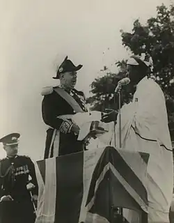 - ↑ a b Der Schädel des Sultans Makaoa. Eine merkwürdige Bestimmung des Versailler Friedens. In: Neues Wiener Tagblatt. Demokratisches Organ / Neues Wiener Abendblatt. Abend-Ausgabe des („)Neuen Wiener Tagblatt(“) / Neues Wiener Tagblatt. Abend-Ausgabe des Neuen Wiener Tagblattes / Wiener Mittagsausgabe mit Sportblatt / 6-Uhr-Abendblatt / Neues Wiener Tagblatt. Neue Freie Presse – Neues Wiener Journal / Neues Wiener Tagblatt, 17. September 1920, S. 5 (online bei ANNO).
