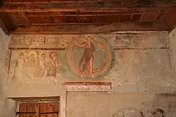 Das älteste Bild eines unbekannten Künstlers, eine Darstellung der Himmelfahrt Christi vor den Aposteln über dem vermauerten Portal an der Westwand des alten Schiffes, stammt vermutlich aus der Mitte des 11. Jahrhunderts. Stilistische und technische Einzelheiten und der byzantinisch beeinflusste Stil der Gestalten zeigen eine Verwandtschaft mit den Fresken von der Basilica di San Vincenzo in Galliano und San Pietro al Monte in Civate in der Lombardei.