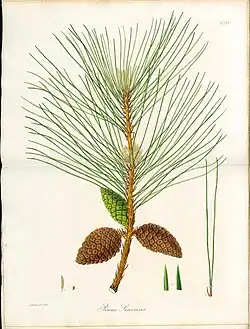 - ↑ Pinus tabuliformis im Germplasm Resources Information Network (GRIN), USDA, ARS, National Genetic Resources Program. National Germplasm Resources Laboratory, Beltsville, Maryland. Abgerufen am 8. Februar 2010.