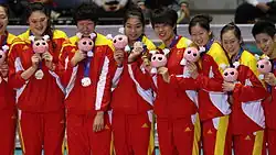 1984 in Los Angeles waren die Chinesinnen erstmals beim olympischen Turnier dabei und gewannen im Finale gegen die USA sofort die Goldmedaille. Bei den Spielen 1988 kam eine Bronzemedaille hinzu. Das Turnier 1992 beendete China auf dem siebten Rang. 1996 in Barcelona unterlagen sie erst im Finale gegen Kuba. Nach einem fünften Platz im Jahr 2000 wurden die chinesischen Frauen 2004 in Athen gegen Russland zum zweiten Mal Olympiasieger. Als Gastgeber gewannen sie 2008 in Peking die Bronzemedaille. Das Turnier 2012 beendeten sie auf dem fünften Rang. 2016 schafften sie mit einem Sieg im Endspiel gegen Serbien ihren dritten Olympiasieg. Bei den 2021 ausgetragenen Olympischen Spielen in Tokio schieden sie in der Vorrunde aus. 2024 in Paris erreichten sie das Viertelfinale.