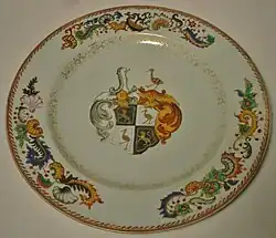 Durch die Handelstätigkeit der großen europäischen Handelskompanien waren Gebrauchs- und Kunstgegenstände aus Porzellan in Europa zu einem begehrten Artikel geworden, die sich in der zweiten Hälfte des 17. Jahrhunderts und dem 18. Jahrhundert (vor allem unter dem Einfluss des immer weiter um sich greifenden Konsums von Tee, Kaffee und Schokolade) zu einer regelrechten Chinamanie steigerte. Anstatt sich auf die Produktion eigener Dekore und Formen zu beschränken, begannen die Chinesen, auch auf direkte Bestellungen hin zu arbeiten. Neben eigens für die Japanische Teezeremonie hergestellten Stücken oder Tellern mit Koran-Inschriften für die islamischen Länder stellten die chinesischen Manufakturen Porzellangut her, das – in der Regel nach eingeschickten Zeichnungen für den Dekor, aber auch nach Musterstücken – dem speziellen Geschmack ihrer europäischen Kunden angepasst war. Besonders seit Beginn des 18. Jahrhunderts lieferten die Chinesen Gebrauchsgegenstände für die herrschaftliche Tafel, die Körperpflege und das Mobiliar an alle größeren Regenten und Adelsgeschlechter Europas. Diese waren zumeist mit dem Wappen der Besteller geschmückt, wofür bei der Bestellung kolorierte Vorzeichnungen nach China geschickt wurden. Solche Wappenservice sind heute auch in Deutschland noch erhalten, etwa das umfangreiche Service mit dem Großen Wappen des preußischen Königshauses, das gegen Mitte des 18. Jahrhunderts mit Schiffen der Preußisch-Asiatischen Kompanie von Kanton nach Europa gelangte. Bei der Auftragsabwicklung konnte es wegen der weiten Entfernung und der beträchtlichen kulturellen Unterschiede zu Problemen kommen. Ein besonderes Kuriosum ist hierbei ein Teller mit dem Wappen der Familie Andros de Guernsey, der dort, wo die eigentlichen Farben verwendet werden sollten, mit den Worten „green, blue, red“ versehen ist. Im Zuge der verstärkten Errichtung von Porzellanmanufakturen in Europa nahm der Porzellanhandel mit China stark ab, so dass die Blütezeit des Chinesischen Auftragsporzellans gegen Ende des 18. Jahrhunderts als beendet gelten kann.