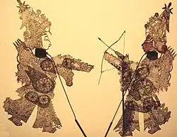 An den Gelenken wurden die Einzelteile mit verknoteten Saiten (Schafdarm, wie für Geigensaiten) verbunden. (Das ist ein Merkmal zur Unterscheidung von indonesischen Figuren, dort werden Hornknöpfchen verwendet.) Dann werden die Führungsstäbe aus Holz oder Bambus befestigt. Zuletzt schließlich bringt man Zusatzausstattung wie Bärte, Feder oder dergleichen an.