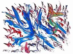 Chinmoy begann im Jahre 1974, farbige, abstrakte Acrylgemälde zu malen. Seine Kunstwerke bezeichnete er als „Jharna-Kala“ (Bengalisch für „Quellen-Kunst“). Mit seinen Bildern möchte er Menschen dazu inspirieren, sich der Schönheit und des Reichtums der inneren Welt bewusst zu werden.[44] Chinmoy malte Tausende dieser Acrylbilder. Das Format seiner Werke reicht von Briefmarkengröße bis zu großen Wandgemälden, die auch Maße von 4 × 20 m erreichen.[45]