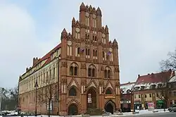 - Das alte Rathaus der Stadt wurde im Stil der Backsteingotik um 1400 von dem Baumeister Hinrich Brunsberg errichtet. Es wurde gegen Ende des Zweiten Weltkrieges im Februar 1945 zerstört und bis 1986 als Kulturzentrum rekonstruiert.