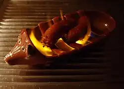 Eine beliebte Zubereitungsart in Portugal ist, die Chouriço auf einer Assa Chouriço – einer oftmals verzierten kleinen keramischen Tischgrillschale – zu flambieren; hierzu wird meist preiswerter Aguardiente, Ethanol oder einheimischer Medronho in die Auffangwanne der Assa gegossen und für wenige Minuten angezündet. Die Chouriço wird vor diesem Flambiervorgang mehrfach der Länge nach seitlich eingestochen, damit unter der großen Hitzeeinwirkung das Fett in die Grillwanne austreten kann.