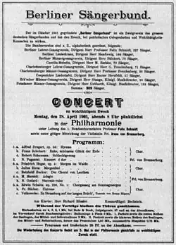 Der Berliner Sängerbund wurde 1901 gegründet. Die musikalischen Wurzeln liegen weiter zurück und reichen bis ins 18. Jahrhundert. Da wäre zunächst Carl Friedrich Fasch (1736–1800) zu nennen, der 1791 die Sing-Akademie zu Berlin gründete und damit den Grundstein zu geregelter, gehobener Chorpflege in Deutschland legte. Sein Schüler Carl Friedrich Zelter (1758–1832), Baumeister, musikalisches Multitalent und Goethe-Freund, übernahm 1800 nach Faschs Tod die Leitung und setzte durch, dass man im Jahre 1827 ein eigenes Haus am Berliner Festungsgraben beziehen konnte. In diesem von Karl Theodor Ottmer nach Skizzen Karl Friedrich Schinkels errichteten klassizistischen Gebäude bereitete Zelter 1829 die Wiederaufführung von Bachs „Matthäuspassion“ vor, die sein bedeutendster Schüler, Felix Mendelssohn Bartholdy (1809–1847), mit großem Erfolg dirigierte. Eine der tragenden Rollen übernahm dabei die Sing-Akademie zu Berlin.