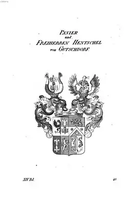 - XXXX Die Freiherren Hentschel auf Gutschdorf In: Notizen-Blatt der historisch-statistischen Section der kais. königl. mährisch-schlesischen Gesellschaft zur Beförderung des Ackerbaues, der Natur- und Landeskunde, Beilage der Mitteilungen 1870, Nro. 2, S. 9