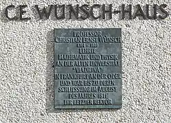 Christian Ernst Wünsch studierte in Leipzig bei Samuel Friedrich Nathanael Morus Medizin und Philosophie. 1784 wurde er zum Professor für Mathematik und Physik an die Brandenburgische Universität Frankfurt berufen, wo er Mitglied der Freimaurerloge Zum aufrichtigen Herzen wurde. Er war 1811 der letzte Rektor der Universität und musste deren Überführung nach Breslau regeln.[1]