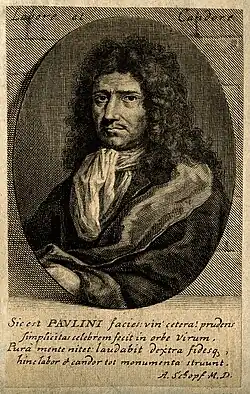 - ↑ Fritz Krafft: Paullini, Christian Frantz. In: Werner E. Gerabek u. a. (Hrsg.): Enzyklopädie Medizingeschichte. 2005, S. 1116.