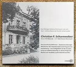 - Friedrich Meusel: Scharnweber, Christian Friedrich. In: Allgemeine Deutsche Biographie (ADB). Band 55, Duncker & Humblot, Leipzig 1910, S. 595–598.