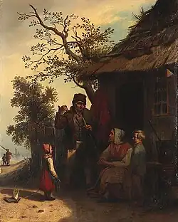 Seine Gemälde und Zeichnungen sind überwiegend Genrebilder aus dem gewöhnlichen Leben und militärischen Alltag.