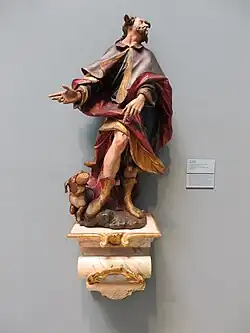 - Pfarrkirche St. Johann Baptist in Oberding-Aufkirchen: Figuren der Apostel Johannes und Andreas (1771)