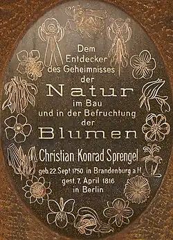 Seit etwa 1787 erforschte Sprengel die Bestäubung von Blüten und die Wechselbeziehungen von Pflanzen und Insekten. 1790 entdeckte er unter anderem beim Schmalblättrigen Weidenröschen die Fremdbestäubung. Mit seinem bahnbrechenden Werk Das entdeckte Geheimnis der Natur im Bau und in der Befruchtung der Blumen (Berlin 1793) war er der Begründer der modernen Blütenökologie. Zu seinen Lebzeiten blieb ihm jedoch die Anerkennung für seine grundlegenden Arbeiten versagt. Prominentester Gegner der Entdeckung Sprengels war Goethe, der ihm vorwarf, der Natur einen menschlichen Verstand zu unterlegen. Richtige Anerkennung erfuhr Sprengels Werk aber erst viele Jahre nach seinem Tod durch Charles Darwin.[1]