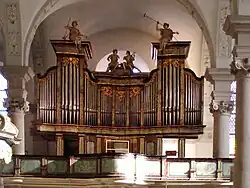 II/p | 27 | Zuschreibung; 1865 freies Pedal ergänzt; 1946–1948 Dispositionsänderungen; 1987 Rekonstruktion unter Beibehaltung des Pedals; Rokoko-Gehäuse; Denkmalorgel |