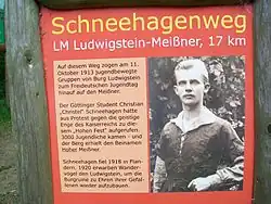 Nach Christian Schneehagen ist der Wanderweg zwischen dem Hohen Meißner und der Jugendburg Ludwigstein benannt.[3] Auf der Burg trägt ein Zimmer seinen Namen.[4] Von Christian Schneehagen existiert ein lebensgroßes Ölbild, welches 1914 vom Stuttgarter Maler Otto Jung angefertigt wurde als Bildnis eines freideutschen Wanderers. Es wurde im Rahmen der Ausstellung "Aufbruch der Jugend" im Germanischen Nationalmuseum in Nürnberg 2013 öffentlich ausgestellt. Das Bild war bis 2014 als Dauerleihgabe auf der Jugendburg Ludwigstein und befindet sich heute wieder in Familienbesitz.