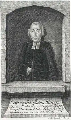 Sein Sohn Johann Christian Ludwig Haken (1767–1835) wurde ebenfalls evangelischer Pfarrer und als Schriftsteller tätig.