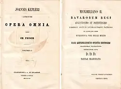 - Christian Frisch (Hrsg.): Joannis Kepleri astronomi opera omnia. Heyder und Zimmer, Frankfurt / Erlangen, 8 Bde. (in 9), 1858–1871