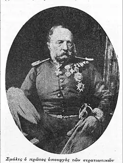 1832 ernannte König Ludwig I. den Offizier zum Inspekteur des Bayerischen Hilfskorps für Griechenland. Schmaltz begleitete dessen Sohn, König Otto I., zur Regierungsübernahme nach Griechenland.[5] Anfangs war er Generalinspekteur der neu aufzustellenden griechischen Truppen und amtierte vom 13. Juni 1833 bis 23. März 1834 und erneut vom 22. Juni 1835 bis 14. Juli 1841 als Kriegsminister des Königreichs Griechenland. Er baute die Streitkräfte des gerade erst unabhängig gewordenen Landes völlig neu auf, was ihm den inoffiziellen Ehrentitel „Vater der griechischen Armee“ eintrug.[6]