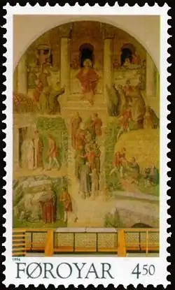 Das Altarbild auf einer Weihnachtsbriefmarke von 1996.