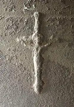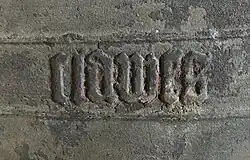 anno do[mi]ni MCCCCCXXIII o rex glorie XPe veni c[um] pace sancta maria ora pro nobis (deutsch: Im Jahre des Herrn 1523. O König der Herrlichkeit, Christus, komm mit Frieden. Heilige Maria, bitte für uns.)