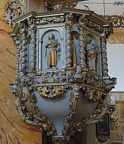 Eine von dem Rendsburger Hans Pahl Geschaffene Kanzel befindet sich an der Nordostecke der Vierung. Das im Jahr 1696 geschaffene Werk wird von reichem plastischem Schmuck geziert. Ein vierseitiger Korb mit Feldern, in denen sich vollplastische Apostelfiguren zeigen, wird von gedrehten Säulen flankiert. Getragen wird dieser Korb von der Figur des Moses. In Fortsetzung des Korbes verläuft eine Treppe mit fünf Feldern, in denen sich weitere Apostelfiguren befinden. Eine Tür mit Pilasterrahmung und einem gesprengten Segmentgiebel wird von zwei Figuren der Apostel geschmückt. Ein zugehöriger Schalldeckel ist mit einer krönenden Christusfigur besetzt, der Putti und Akanthuslaubwerk als Sockelrahmung dient. Insgesamt ist es eine prachtvolle Arbeit des Akanthusbarock.