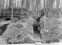 Y.M.C.A.-Dreieck am Eingang der CVJM-Station im Stellungssystem der US-Truppen bei Badonviller (1918)