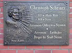 - Eine zweisprachige Gedenktafel zu Scheiner gibt es in Nysa (Neisse).