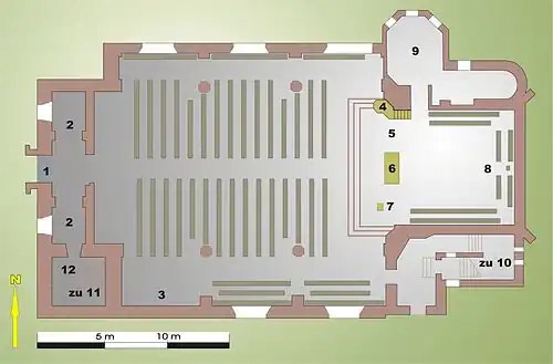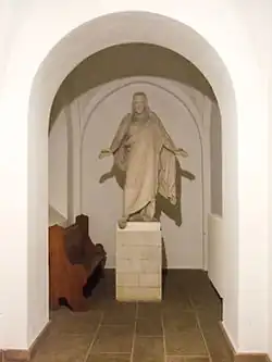 - 2: Vorraum der Kirche: Links befindet sich heute die Christusfigur.