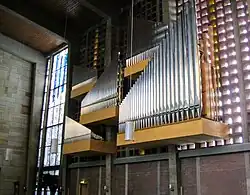 Der Kirchenneubau erhielt als Opus 1937 eine Schleifladenorgel mit 49 Registern der Firma Fritz Steinmeyer. Während der Umbauarbeiten 2006 wurde die Orgel von Orgelbauer Friedrich in Oberasbach abgebaut und in dessen Werkstatt ausgelagert, wo es im Januar 2007 zu einem Diebstahl des vollständigen Metallpfeifenwerks der Orgel kam. Bis 2010 wurde die Orgel entsprechend der originalen Disposition rekonstruiert und das Pfeifenwerk unter Einhaltung der originalen Mensuren und Legierungen wiederhergestellt. Anstelle der früheren Position auf der Westempore wurde das Instrument nun seitlich des Altarraums auf einem Stahlträgergerüst vor der Wand aufgestellt, während das Schwellwerk unterhalb des Bodenniveaus hinter dem Altar versenkt wurde.[4][5]