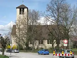Die Christuskirche in Reutlingen mit den beiden Platanen, die als Naturdenkmal eingetragen sind