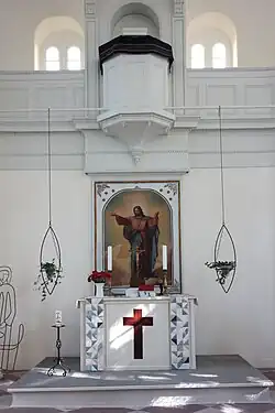 Aus der alten Kirche sind einige Gerätschaften erhalten, die noch heute genutzt werden. Das älteste Objekte ist ein Abendmahlsteller (Patene) von 1645. Weiter eine Oblatendose (9 cm Durchmesser, 4 cm hoch), die 1699 von der Familie von Garßen gestiftet worden war. Die Rundumschrift lautet „Der Ehre Gottes. Und dem Gebrauch der Oblate haben diese silberne Schachtel stiften wollen D.J.G. Garßen Wittwe und Kinder“, der Deckel zeigt das Wappen der Familie von Garßen und die Jahreszahl 1699. Etwa gleichalt ist der 22 cm hohe Abendmahlskelch, er ist aus Silber und Kupfer und ist innen vergoldet. Dazu wurde 1881 noch eine Abendmahlskanne gestiftet. Das Christusbild, das auch heute noch hinter dem Altar hängt, wurde 1870 der Kirche gespendet, das Taufbecken 1879 und der Kronleuchter 1897.[11]