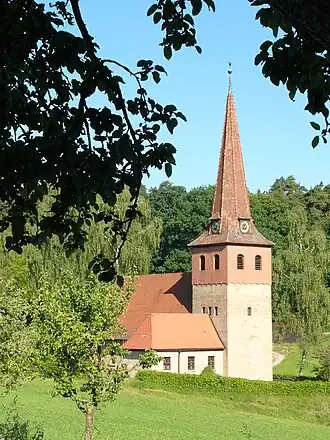 - ↑ Manfred Jehle: Kirchliche Verhältnisse und religiöse Institutionen an der oberen Altmühl, Rezat und Bibert: Klöster, Pfarreien und jüdische Gemeinden im Altlandkreis Ansbach im Mittelalter und in der Neuzeit (= Mittelfränkische Studien. Band 20). Historischer Verein für Mittelfranken, Ansbach 2009, ISBN 978-3-87707-771-9, S. 153.