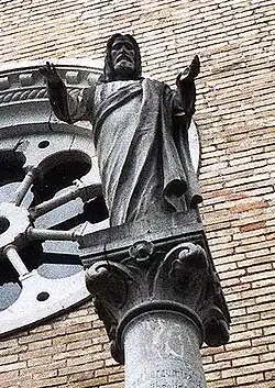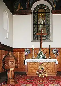 Die Kirche ist im neoromanischen Stil erbaut. Zusammen mit dem im istrianischen Stil erbauten Pfarrhaus aus dem Jahre 1911 bildet sie mit ihren romanischen Formen und dem offenen Kirchensäulenaufgang ein städtebauliches Ensemble.
